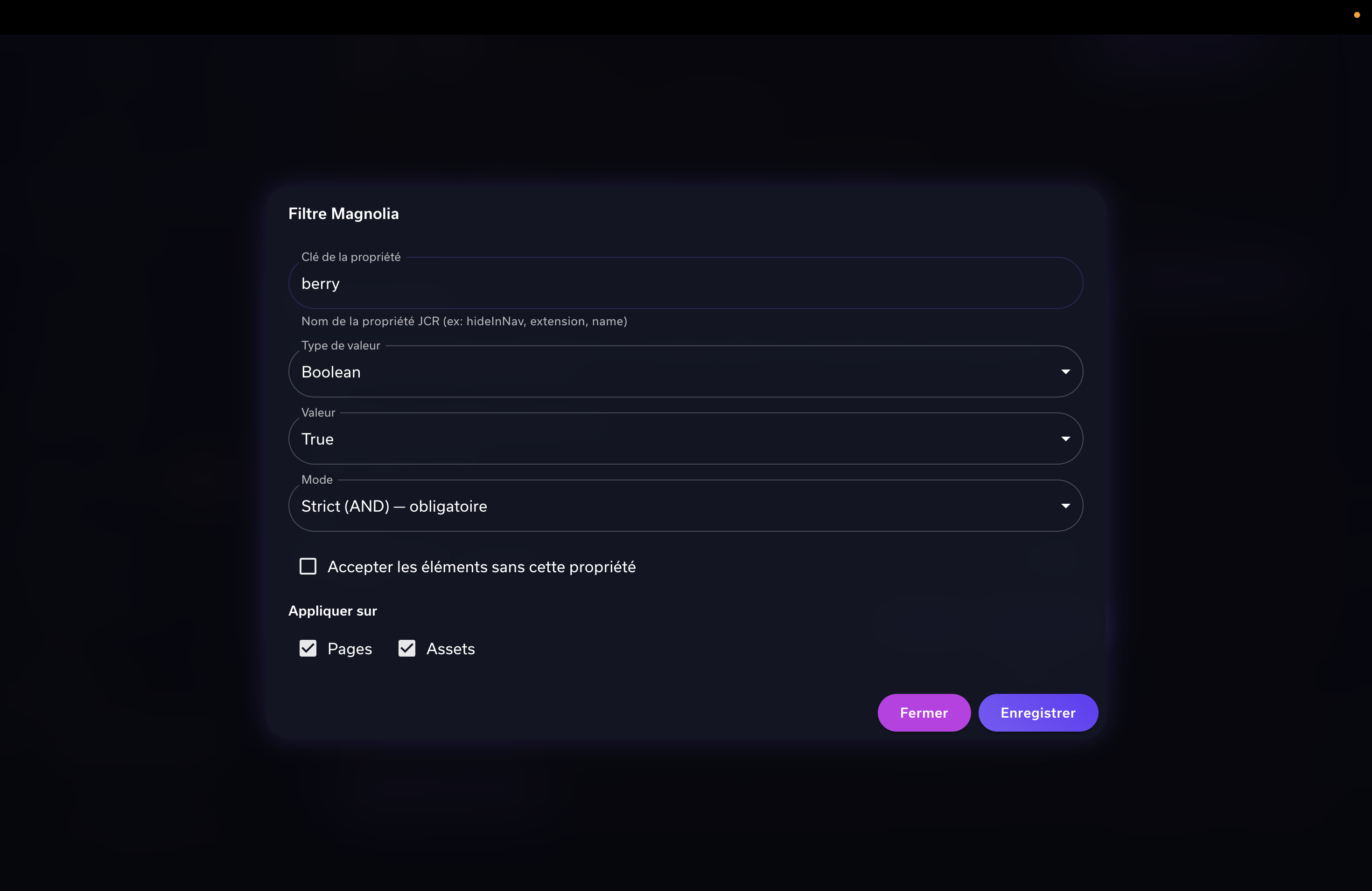 | Appliquer sur | Pages, Assets, ou les deux |